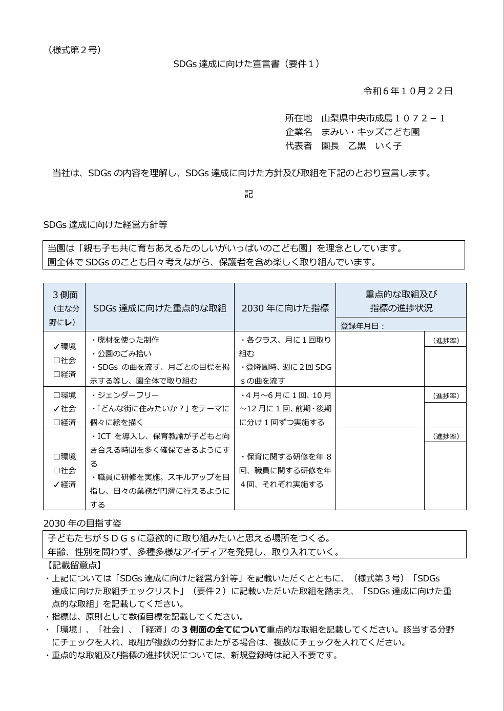 委員会活動【SDGs委員会】 園内委員会活動のようす 2024.12.26 この度、当園が『やまなしSDGs推進企業』に登録されました。 引き続き、園では、SDGsへの取り組みに力を入れていきたいと思います!! ※『やまなしSDGs推進企業』と検索 ⇒「やまなしSDGs推進企業(第7期)」の中に当園が記載されています。 他の登録企業も見ることが出来ますので是非、検索してみてください。