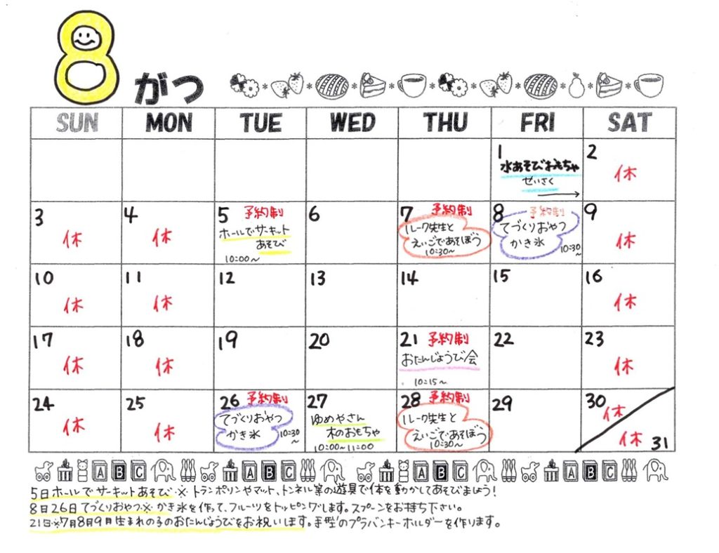 ちゃいるど広場予定 令和7年8月