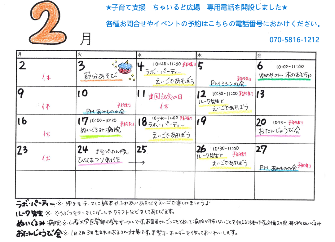 ちゃいるど広場予定 令和8年2月
