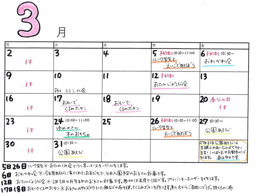 ちゃいるど広場予定 令和8年3月